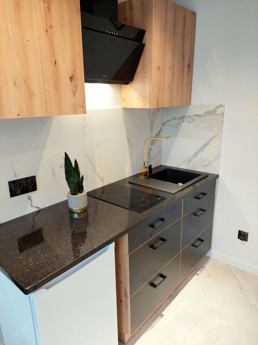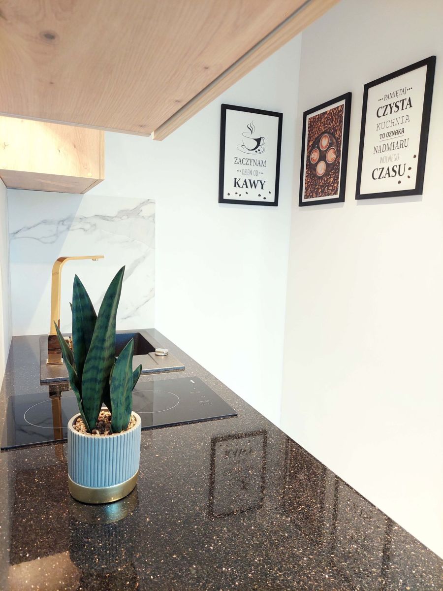Lokal przeszedł kapitalny remont, wykonany z dbałością o detale oraz wysoką jakość materiałów. Zastosowano m.in. kamienny blat kuchenny i parapety oraz nowoczesne oświetlenie LED.